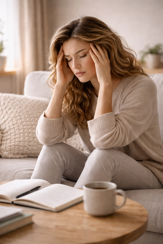 Esa sensación de tener la cabeza llena no surge solo porque no hayas dormido lo suficiente o porque te falte fuerza de voluntad. Se presenta cuando el sistema nervioso ha estado activo durante demasiado tiempo y la mente intenta manejar todo al mismo tiempo. Tu cuerpo sigue en estado de alerta, incluso si estás sentada o simplemente “descansando”. Por eso, descansar no siempre significa que realmente te estés desconectando. Para que tu mente se despeje, primero necesitas decirle a tu cuerpo que ya no tiene que cargar con tanto.