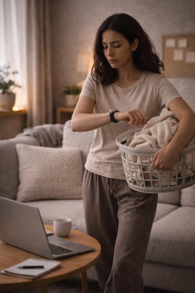 Llegas a casa y sigues en marcha. Empiezas a hacer cosas casi sin darte cuenta: ordenar, responder mensajes, avanzar pendientes, pensar en mañana. No estás acelerada emocionalmente, pero no sabes parar.